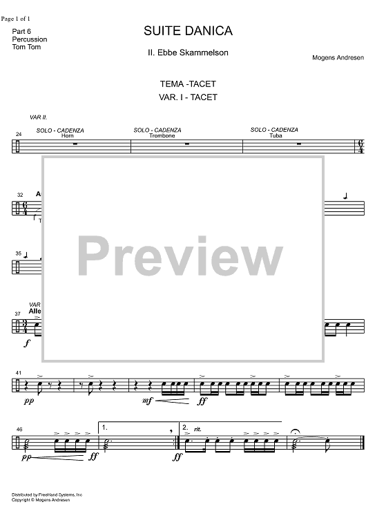 "Suite Danica - Percussion" Sheet Music by Mogens Andresen
