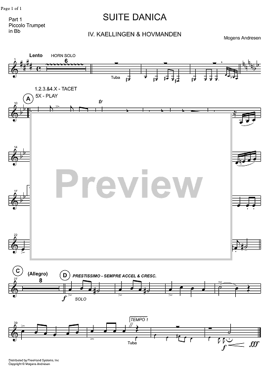 "Suite Danica - Piccolo Trumpet in B-flat" Sheet Music by Mogens Andresen