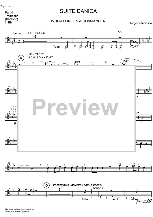 "Suite Danica - Trombone/Baritone in B-flat BC" Sheet Music by Mogens Andresen