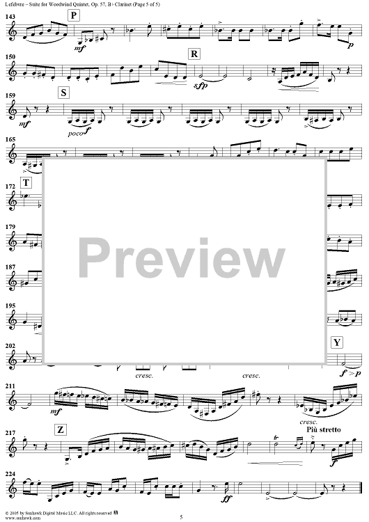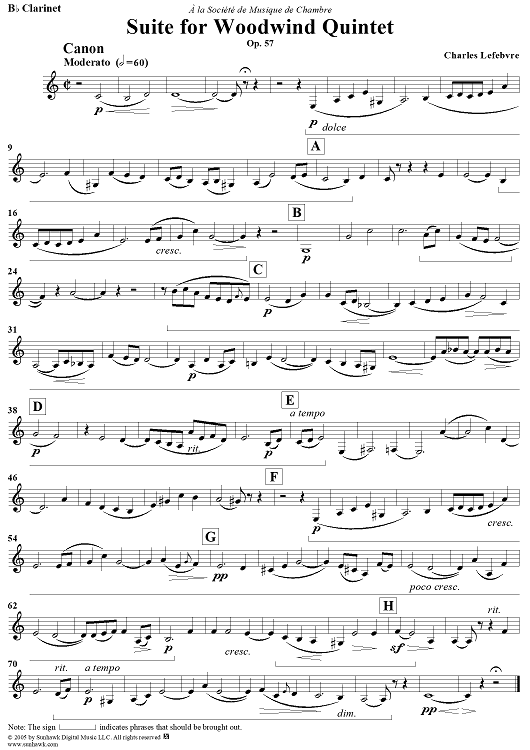 "Suite for Woodwind Quintet, Op. 57 - Clarinet in B-flat" Sheet Music by Charles Lefebvre