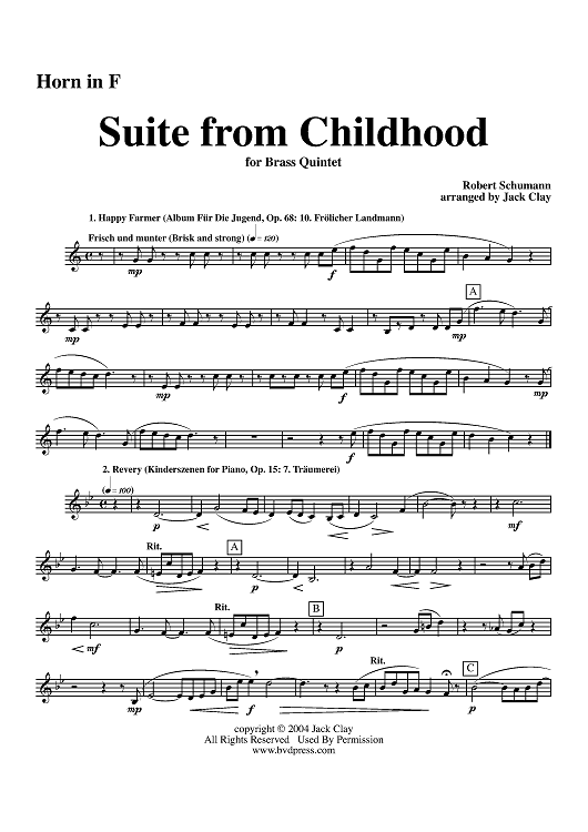 Digital Sheet Music for Suite from Childhood - Horn by Robert Schumann, Jack Clay scored for Brass Quintet; id:312157