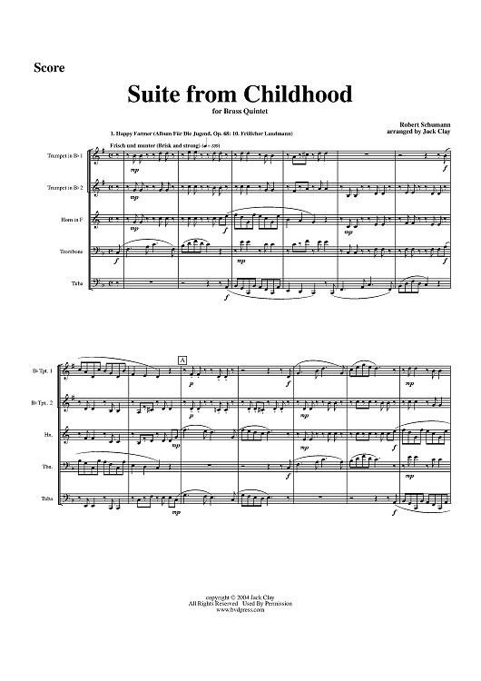Digital Sheet Music for Suite from Childhood - Score by Robert Schumann, Jack Clay scored for Brass Quintet; id:312154