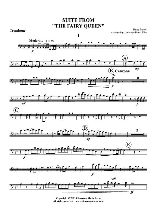 Digital Sheet Music for Suite from "The Fairy Queen" - Trombone by Henry Purcell, Lawrence David Eden scored for Brass Quintet; id:425089
