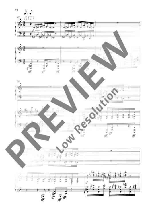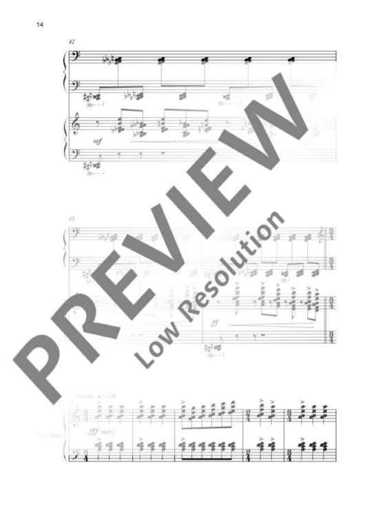Suite No. 1 is a hymn to the divinity of the dance. The piece explores all possibilities of extreme rhythm, harmony and orchestration in order to place special emphasis on the piano as a solo instrument with all its possibilities: from percussion instrument to lyric simplicity. At the end, the composer quotes the style of his scores together with the ancient tragedies in an epilogue with prominent signals from the wind section.