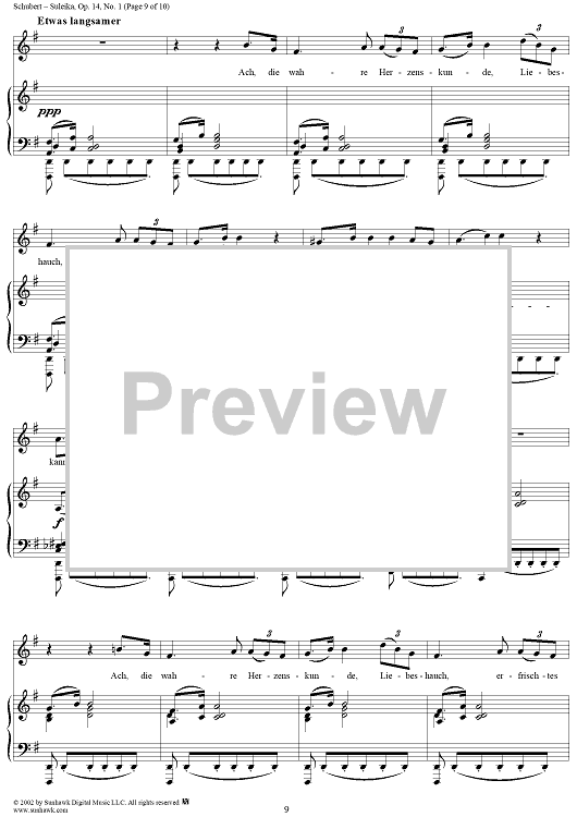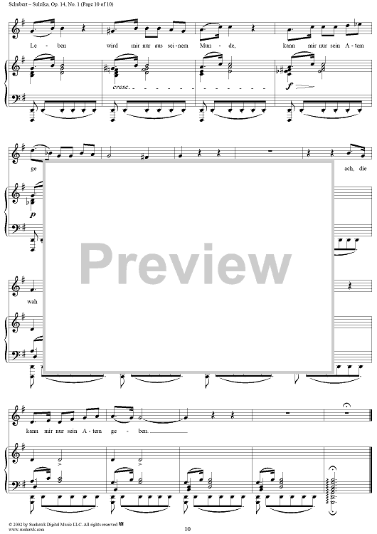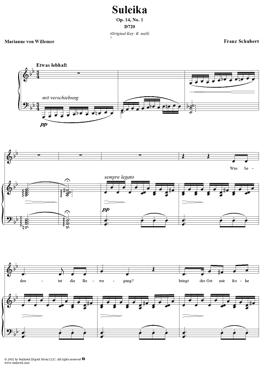 Digital Sheet Music for Suleika I, Op.14, No. 1, D720 by Franz Schubert scored for Voice/Piano; id:256628