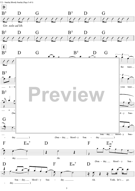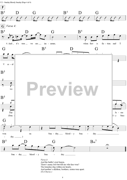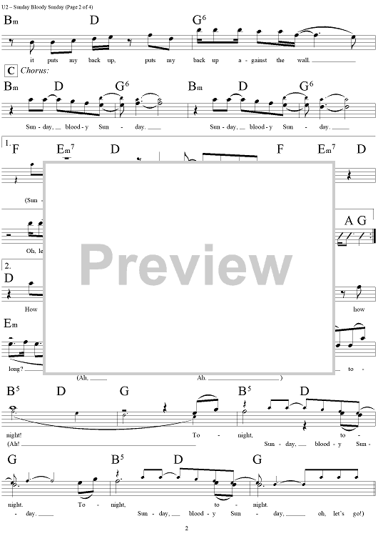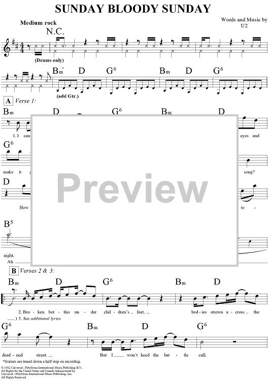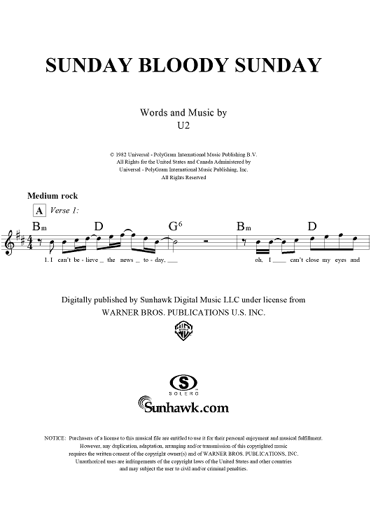 Digital Sheet Music for Sunday Bloody Sunday by U2, Bono, The Edge scored for Lead Sheet; id:293776