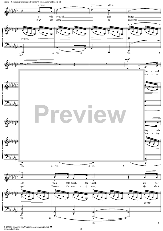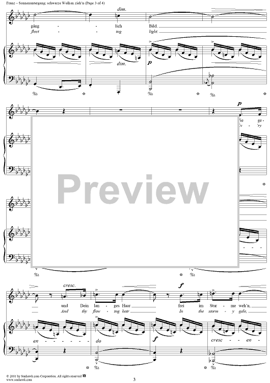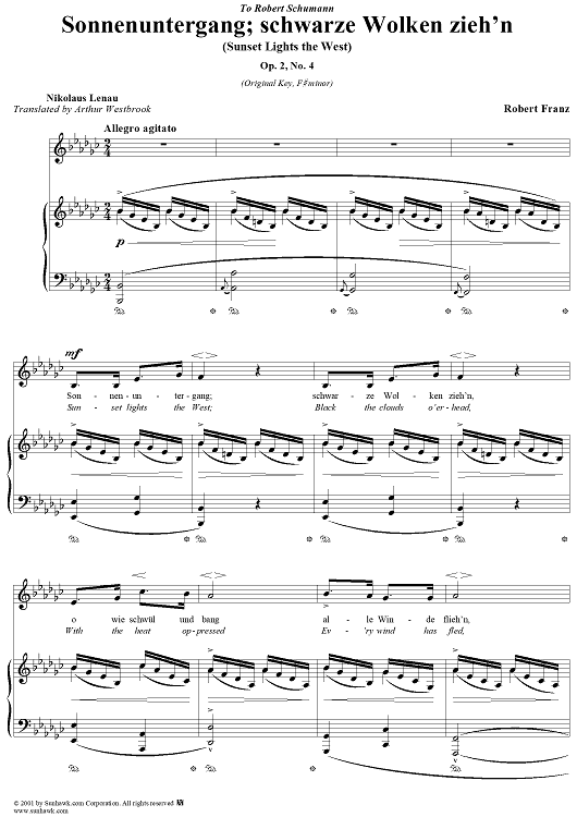 Digital Sheet Music for Sunset Lights on the West (Sonnenuntergang; schwarze Wolken zieh'n) by Robert Franz, Nikolaus Leneau scored for Voice/Piano; id:269591