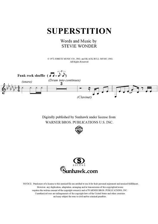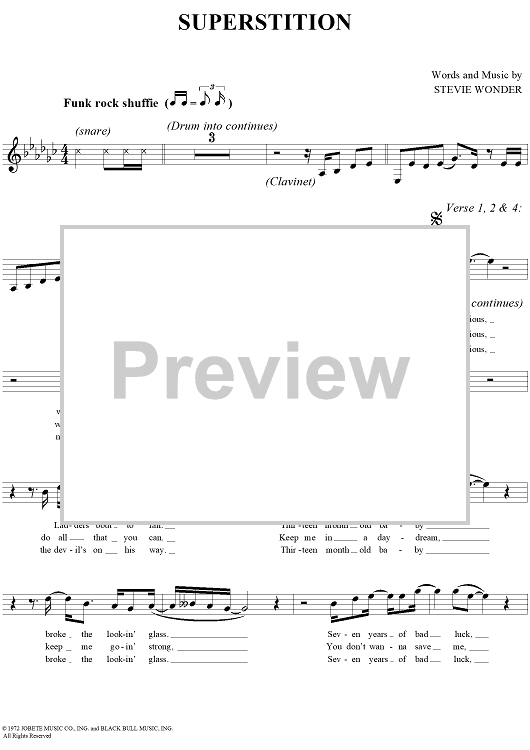 Digital Sheet Music for Superstition by Stevie Wonder scored for Lead Sheet; id:263248