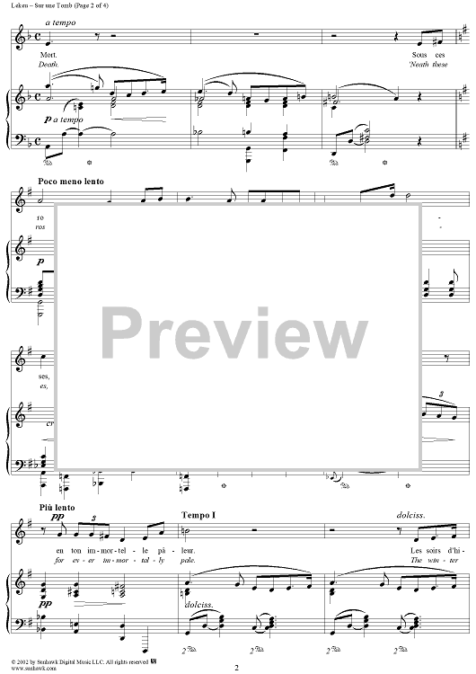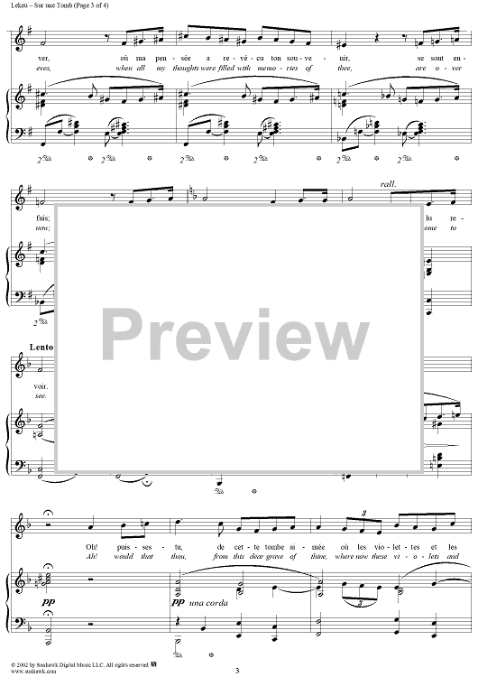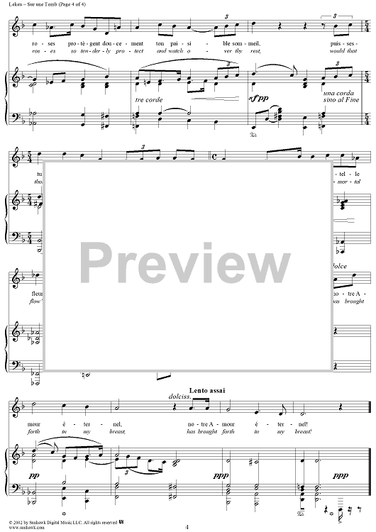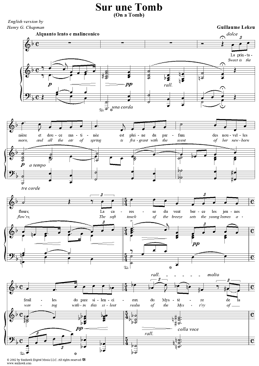 Digital Sheet Music for Sur une Tomb, On a Tomb by Guillame Lekeu scored for Voice/Piano; id:250674