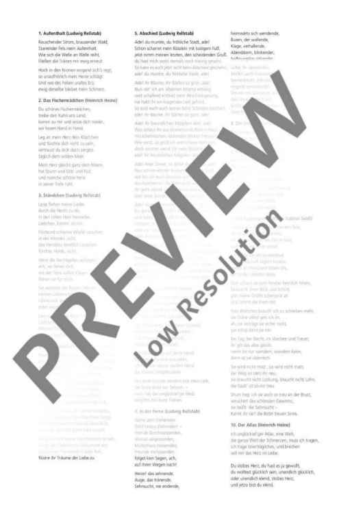 The significant composers of the Romantic period almost entirely ignored the flute as a solo or chamber music instrument. It’s for this reason that any historical adaptations of works suitable for the flute by these composers are regarded as an extremely welcome enrichment to the repertoire. In this case, violinist and composer Leopold Jansa – who was amongst Vienna’s leading music personalities in the first half of the 19th century – took the songs of his contemporary Franz Schubert and arranged them for flute and piano “after Fr. Liszt’s adaptation”. As in the adaptation of Schubert’s Winterreise [Winter journey] for flute and piano (Zimmermann ZM 35060), Jansa also remains close to Schubert’s original at the beginning of the ten selected swansongs and tastefully modifies the subsequent verses with embellishments which allude to Franz Liszt’s piano adaptations.