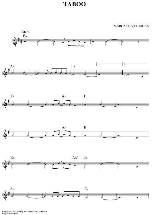 Digital Sheet Music for Taboo by Margarita Lecuona scored for Lead Sheet; id:456884