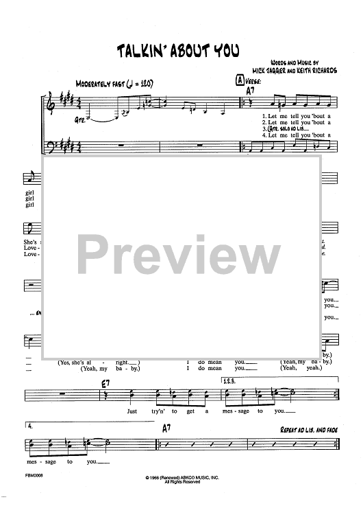 Digital Sheet Music for Talkin' About You by Keith Richards, The Rolling Stones, Mick Jagger scored for Lead Sheet; id:437624