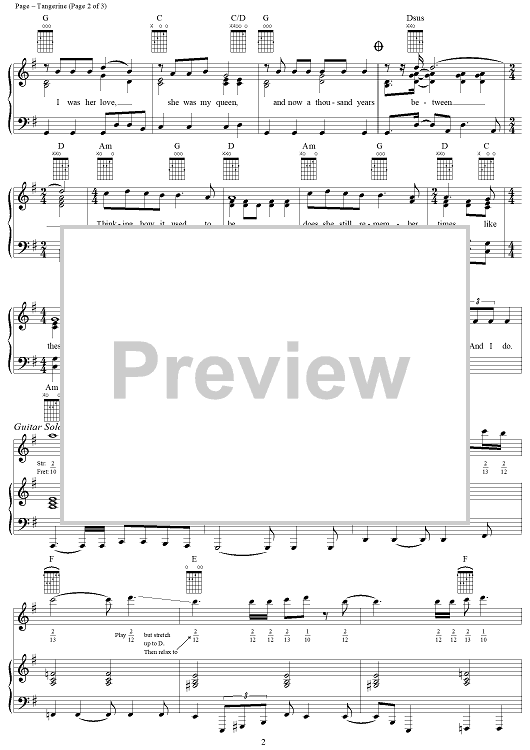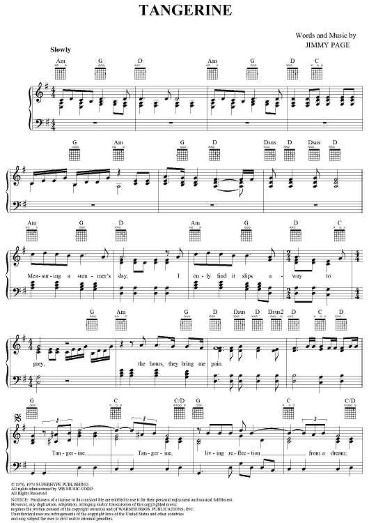 Digital Sheet Music for Tangerine by Jimmy Page, Led Zeppelin scored for Piano/Vocal/Chords; id:254289