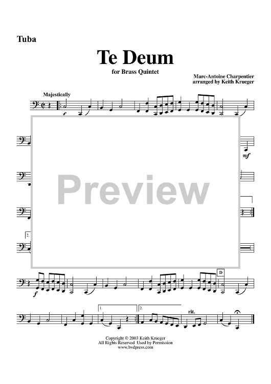 Digital Sheet Music for Te Deum - Tuba by Keith Krueger, Marc-Antoine Charpentier scored for Brass Quintet; id:315043