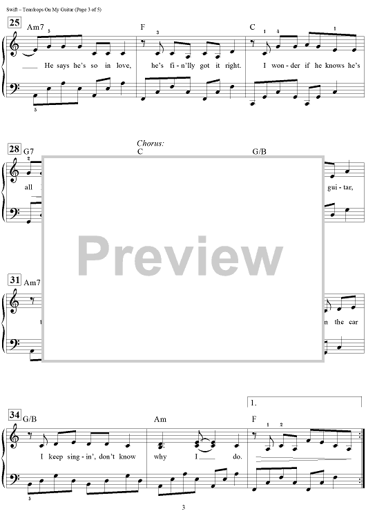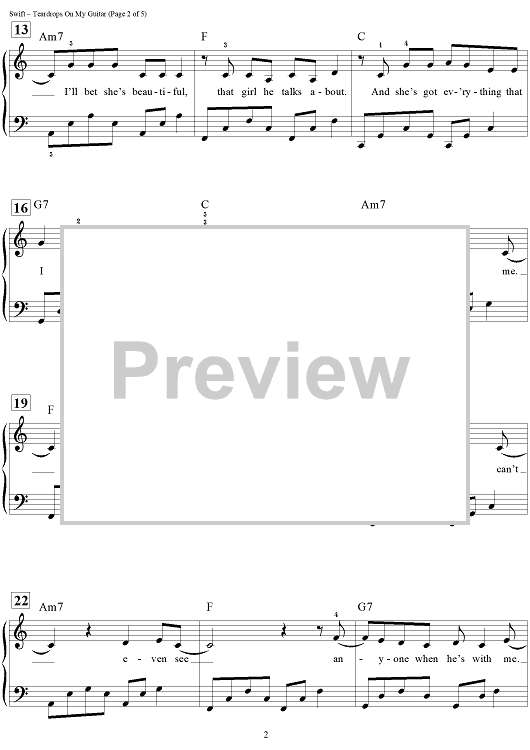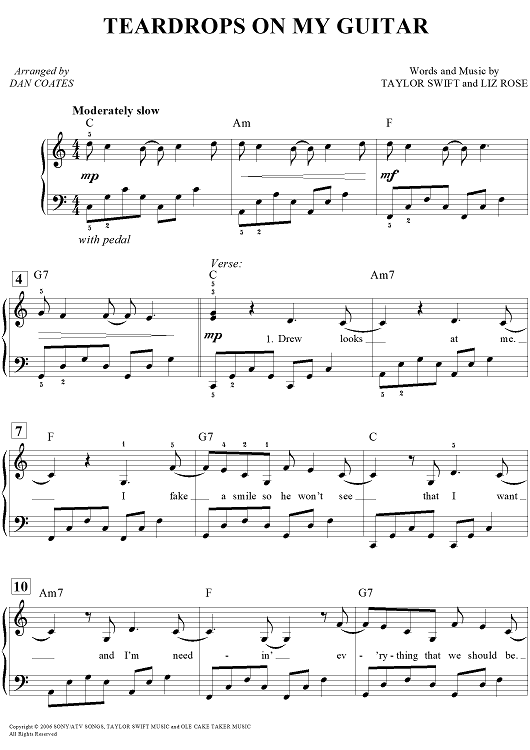 Digital Sheet Music for Teardrops on My Guitar by Dan Coates, Liz Rose, Taylor Swift scored for Easy Piano/Vocal/Chords; id:447210