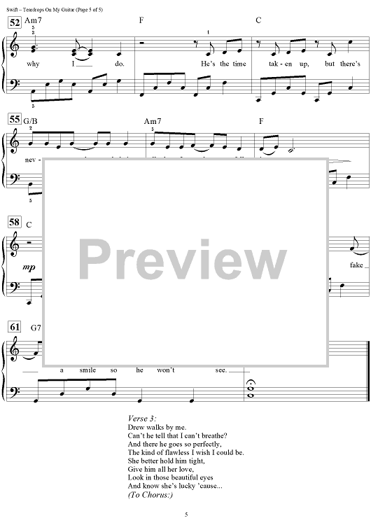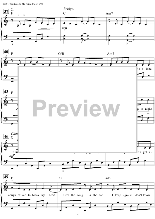 "Teardrops on My Guitar" Sheet Music by Taylor Swift