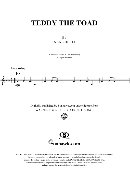 "Teddy the Toad" Sheet Music by Neal Hefti