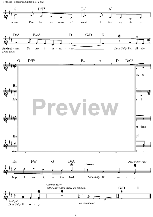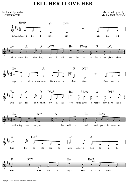 Digital Sheet Music for Tell Her I Love Her by Mark Hollmann, Greg Kotis scored for Lead Sheet; id:460458