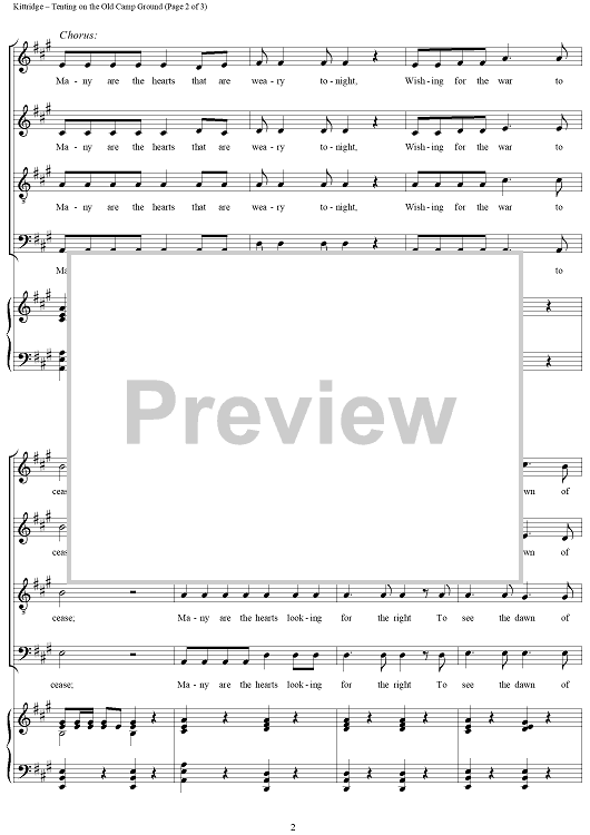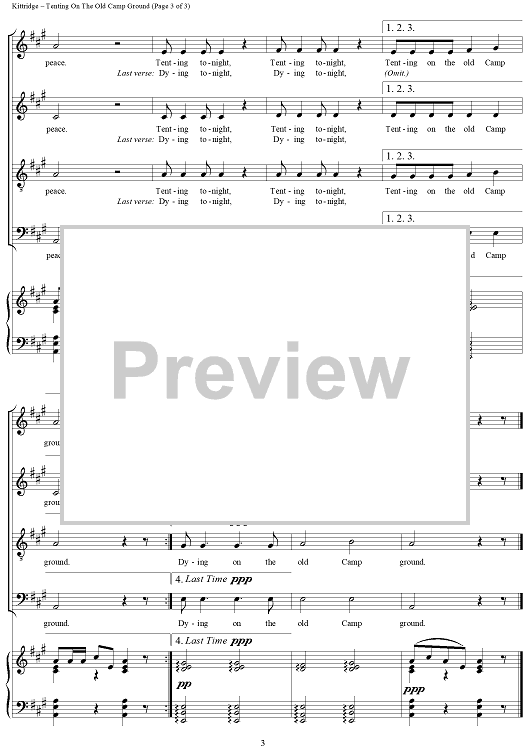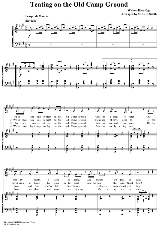 Digital Sheet Music for Tenting on the Old Campground by MF. H. Smith scored for Piano/Vocal; id:260084