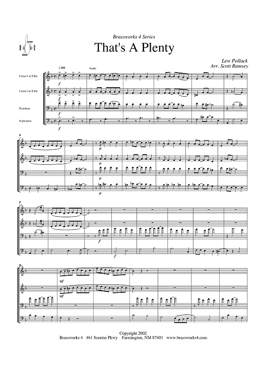 Digital Sheet Music for That's A Plenty - Score by Lew Pollack, Scott A. Ramsey scored for Brass Quartet; id:316701