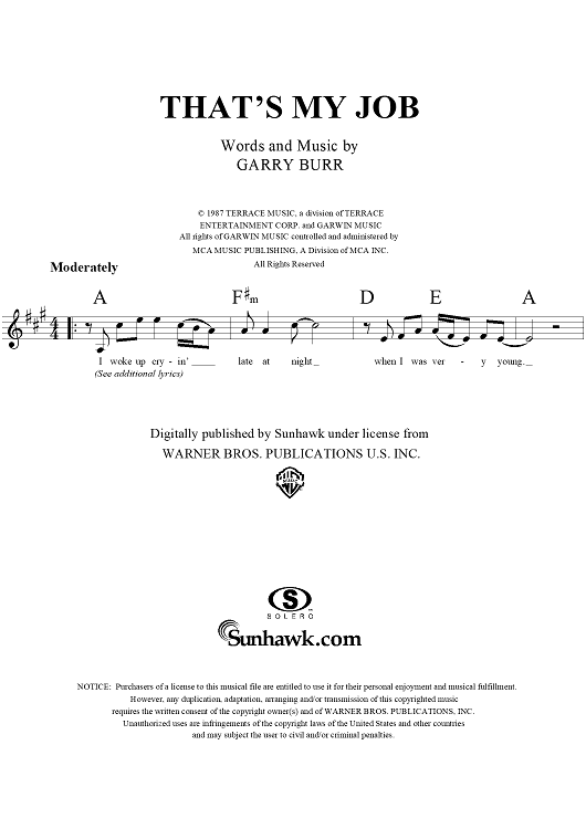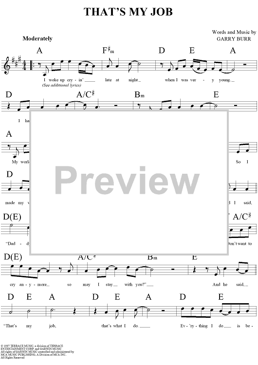 Digital Sheet Music for That's My Job by Gary Burr, Conway Twitty scored for Lead Sheet; id:273655