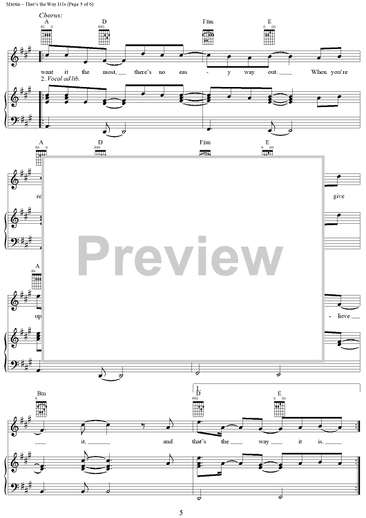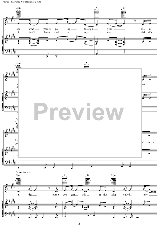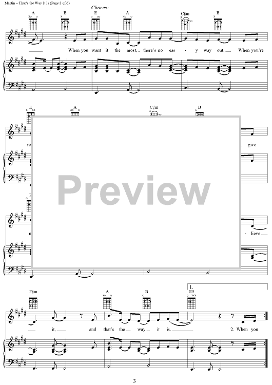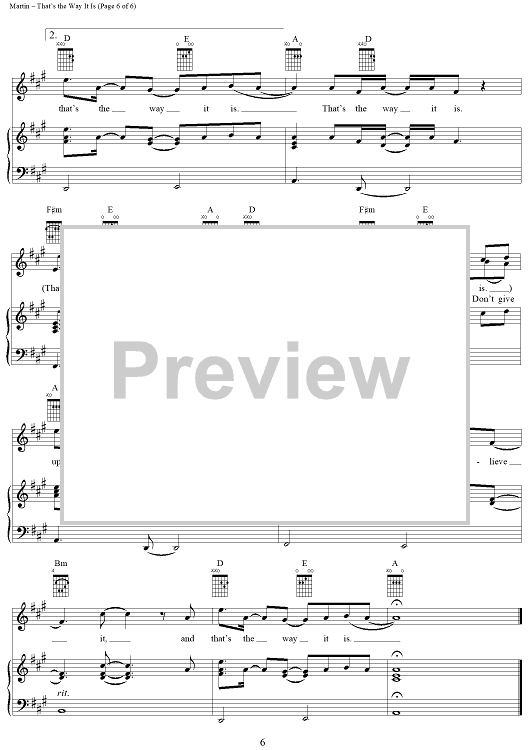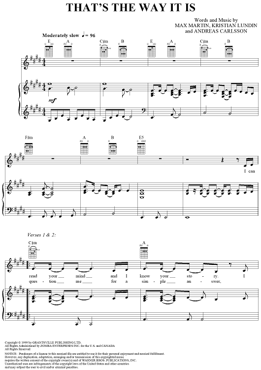 Digital Sheet Music for That's the Way It Is by Celine Dion, Max Martin, Andreas Carlsson, Kristian Lundin scored for Piano/Vocal/Chords; id:154790