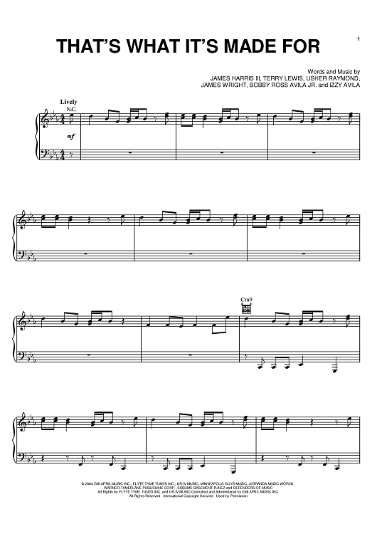 Digital Sheet Music for That's What It's Made For by Usher, Jimmy Jam, Terry Lewis, James Wright, Bobby Ross Avila Jr., Izzy Avila scored for Piano/Vocal/Chords; id:375340