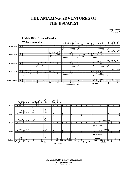 Digital Sheet Music for The Amazing Adventures of The Escapist - Score by Greg Danner scored for Trombone Choir; id:361352