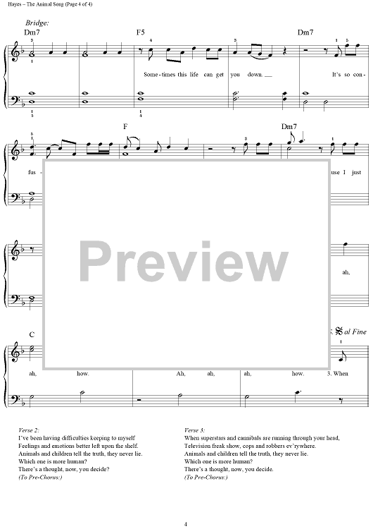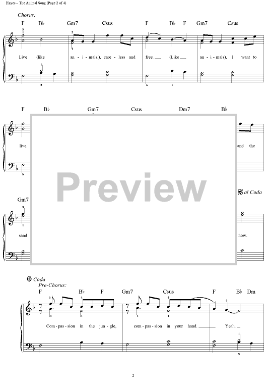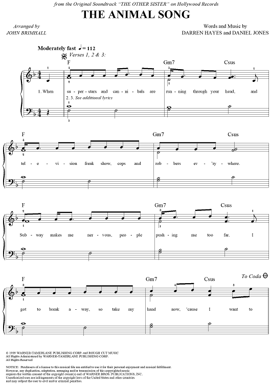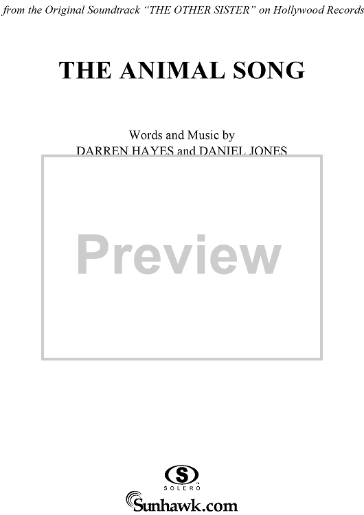 Digital Sheet Music for The Animal Song by Darren Hayes, Daniel Jones, John Brimhall, Savage Garden scored for Easy Piano/Vocal; id:236103