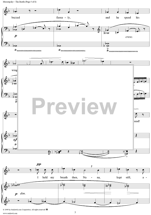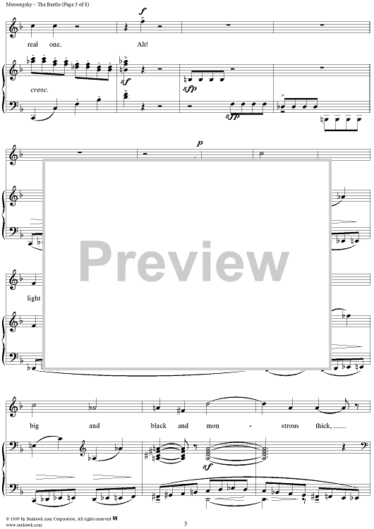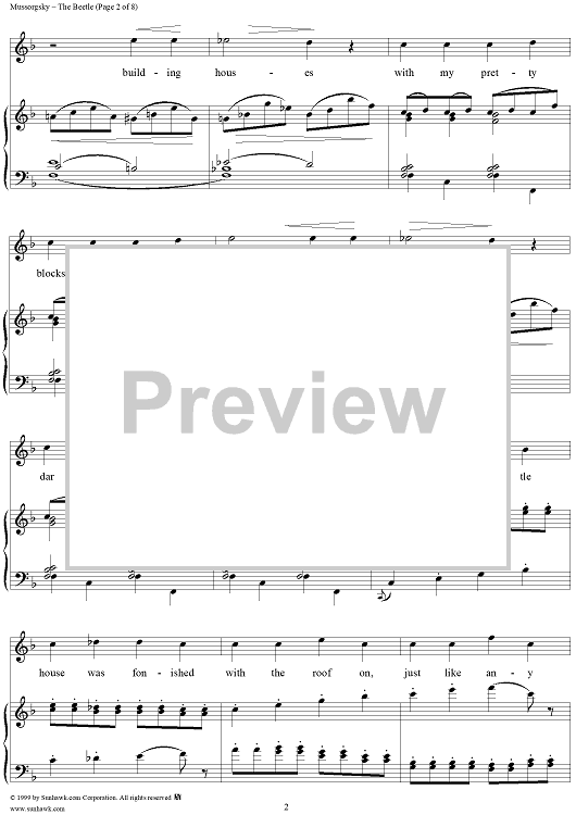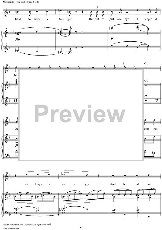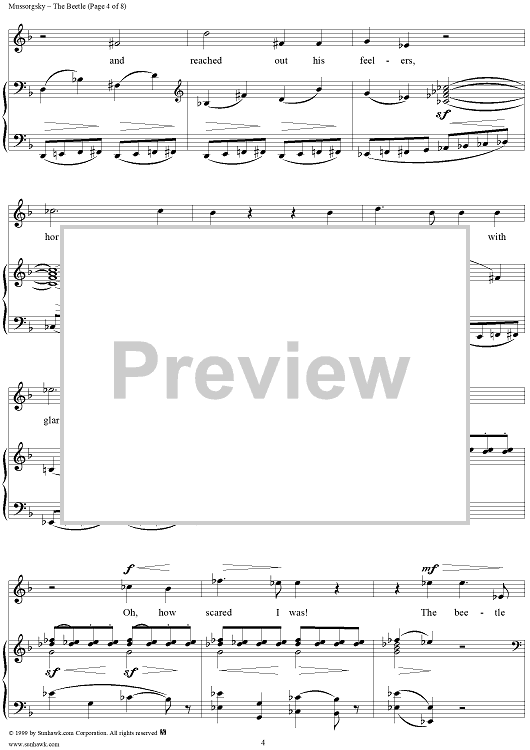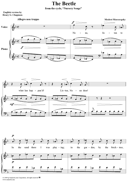Digital Sheet Music for The Beetle by Modest Musorgsky scored for Voice/Piano; id:276294