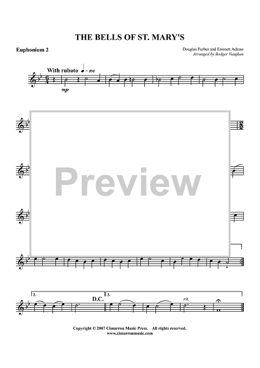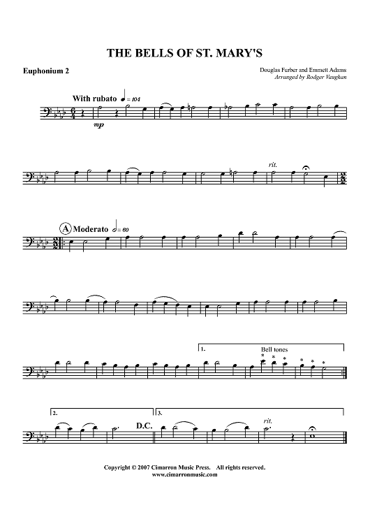 Digital Sheet Music for The Bells of St. Mary's - Euphonium 2 BC/TC by Douglas Furber, A. Emmett Adams, Rodger Vaughan scored for Tuba Quartet; id:413542