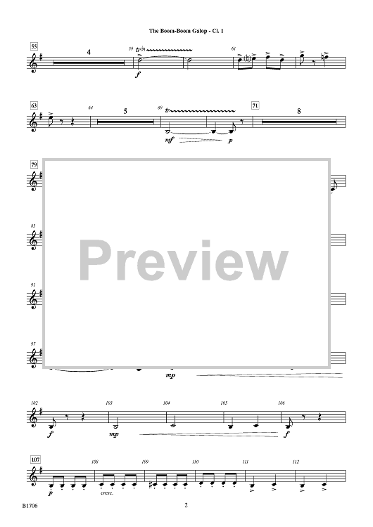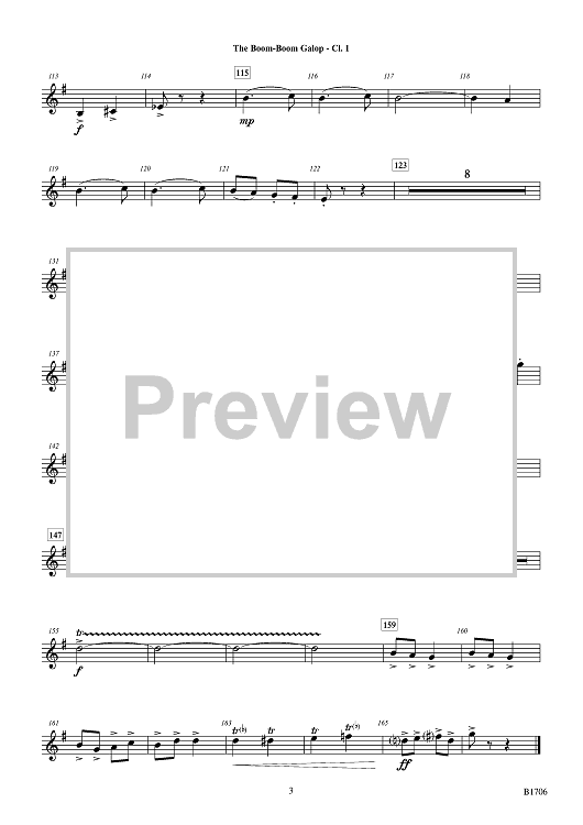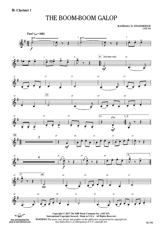 "The Boom-Boom Galop - Bb Clarinet 1" Sheet Music by Randall D. Standridge