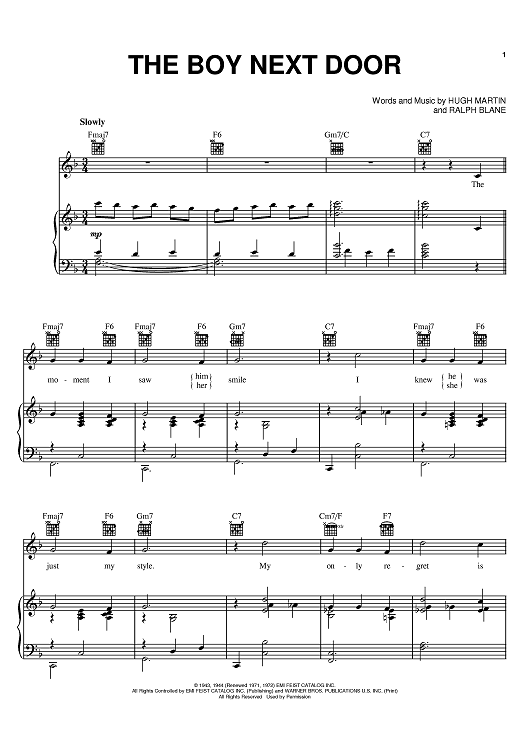 Digital Sheet Music for The Boy Next Door by Judy Garland, Hugh Martin, Ralph Blane, Jo Stafford, Secrets scored for Piano/Vocal/Chords; id:374989