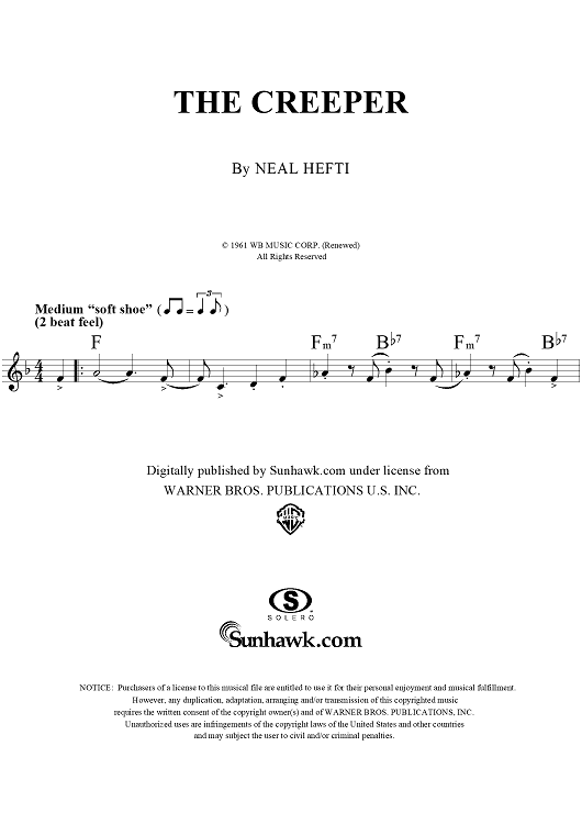 Digital Sheet Music for The Creeper by Neal Hefti scored for Lead Sheet; id:267056