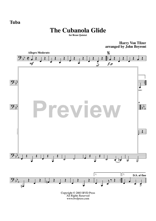 Digital Sheet Music for The Cubanola Glide - Tuba by Harry Tilzer, John Beyrent scored for Brass Quintet; id:315814