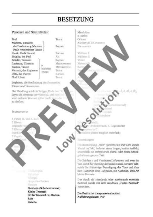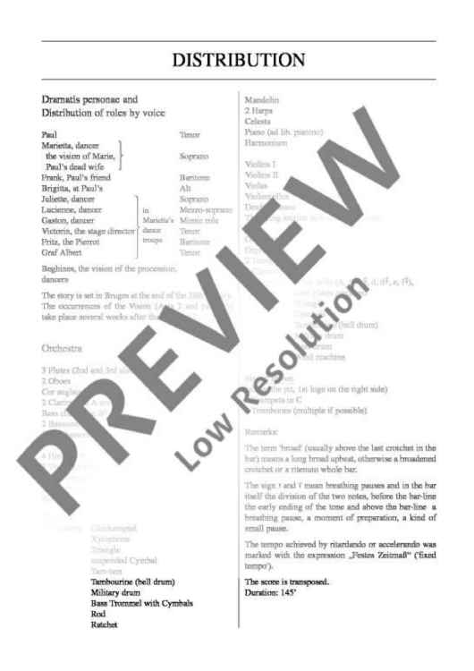 "The Dead City - Full Score" Sheet Music by Erich Wolfgang Korngold