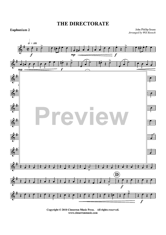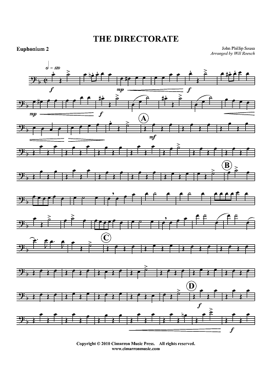 Digital Sheet Music for The Directorate - Euphonium 2 BC/TC by John Philip Sousa, Will Roesch scored for Tuba Quartet; id:426785