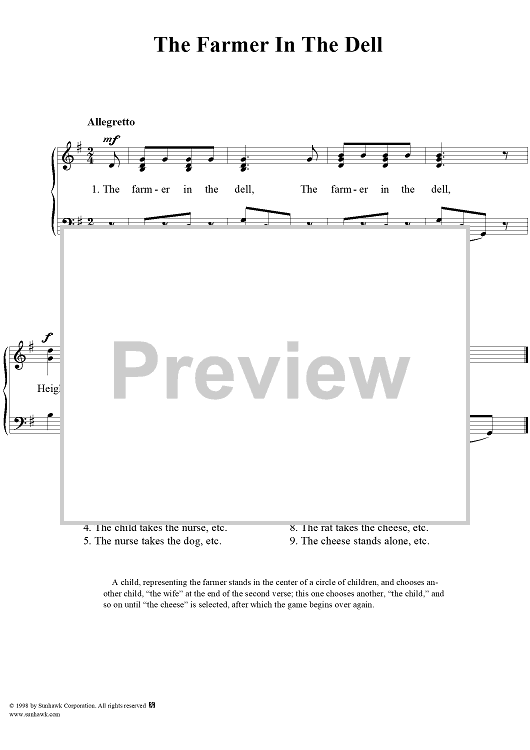 Digital Sheet Music for The Farmer in the Dell by Traditional scored for Piano/Vocal; id:113890