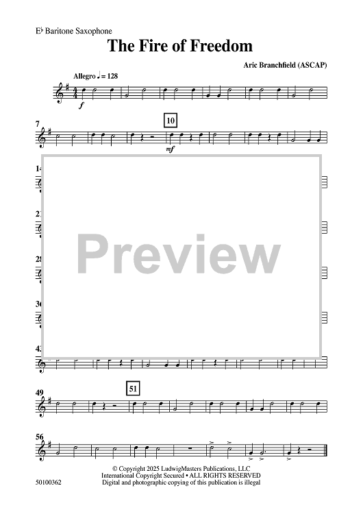 "The Fire of Freedom - Eb Baritone Saxophone" Sheet Music by Aric Branchfield