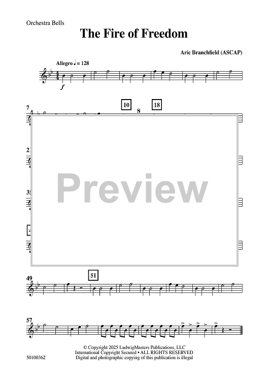Digital Sheet Music for The Fire of Freedom - Orchestra Bells by Aric Branchfield scored for Concert Band; id:509322