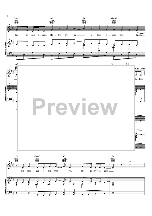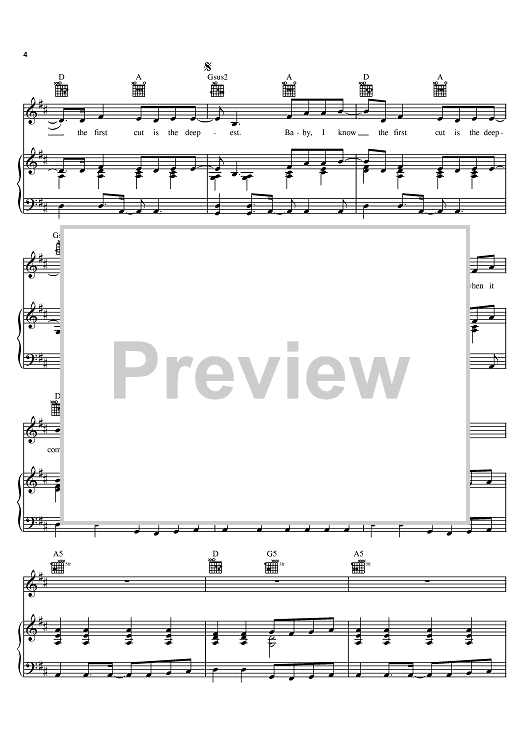 Digital Sheet Music for The First Cut Is The Deepest by Rod Stewart, Cat Stevens, Sheryl Crow scored for Piano/Vocal/Chords; id:375050