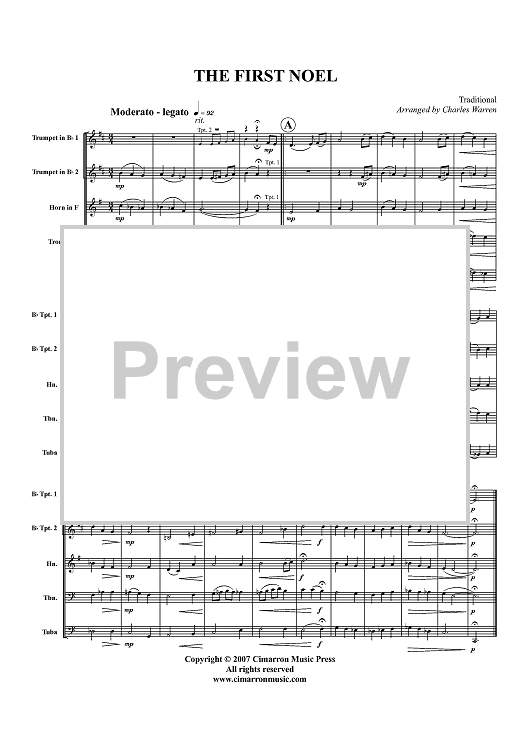 Digital Sheet Music for The First Noel - Score by Charles Warren, Traditional scored for Brass Quintet; id:424382