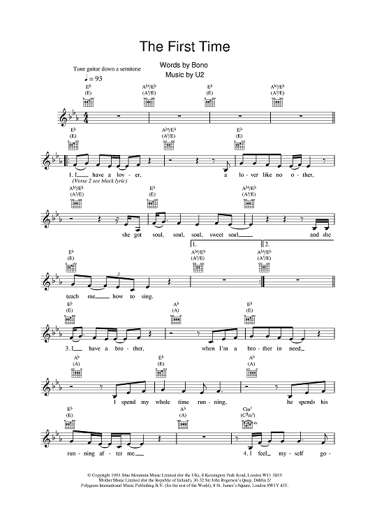 Digital Sheet Music for The First Time by U2 scored for Lead Sheet; id:376974