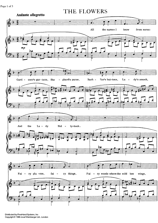 Digital Sheet Music for The Flowers by Malcolm Williamson scored for Soprano or Tenor/Piano; id:332959