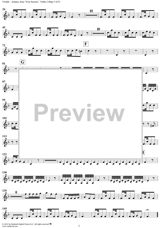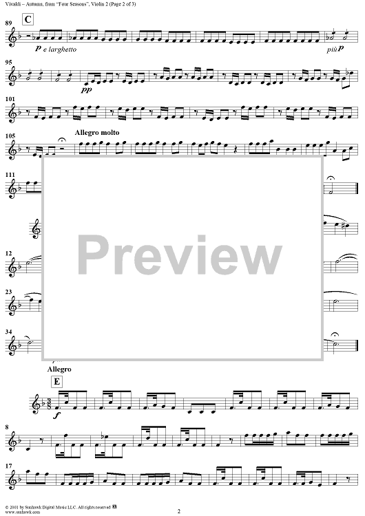 Digital Sheet Music for The Four Seasons, No. 3: Autumn - Violin 2 by Antonio Vivaldi scored for Violin and String Orchestra; id:203840