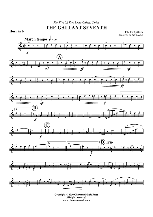 Digital Sheet Music for The Gallant Seventh - Horn in F by John Philip Sousa, Bill Yeckley scored for Brass Quintet; id:427174