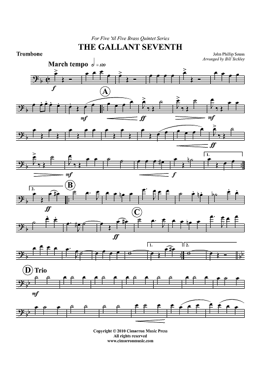 Digital Sheet Music for The Gallant Seventh - Trombone by John Philip Sousa, Bill Yeckley scored for Brass Quintet; id:427175