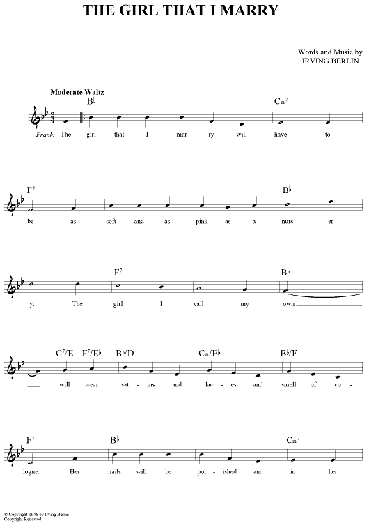 Digital Sheet Music for The Girl That I Marry by Irving Berlin scored for Lead Sheet; id:441516