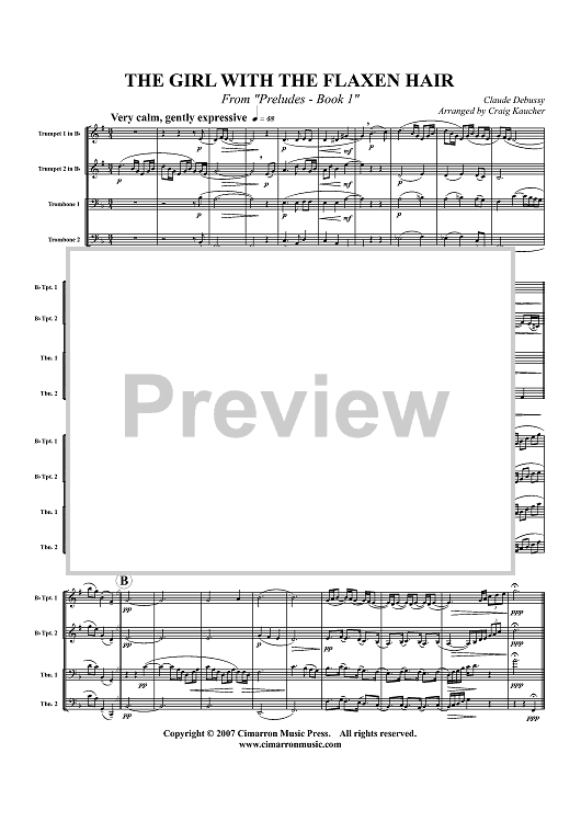 Digital Sheet Music for The Girl with the Flaxen Hair - From "Preludes - Book 1" - Score by Claude Debussy, Craig Kaucher scored for Brass Quartet; id:413915