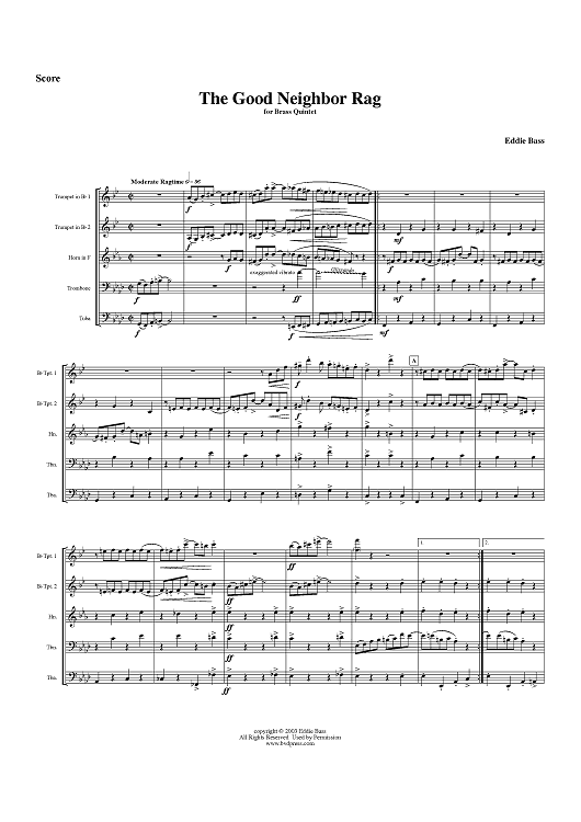 Digital Sheet Music for The Good Neighbor Rag - Score by Eddie Bass scored for Brass Quintet; id:312303